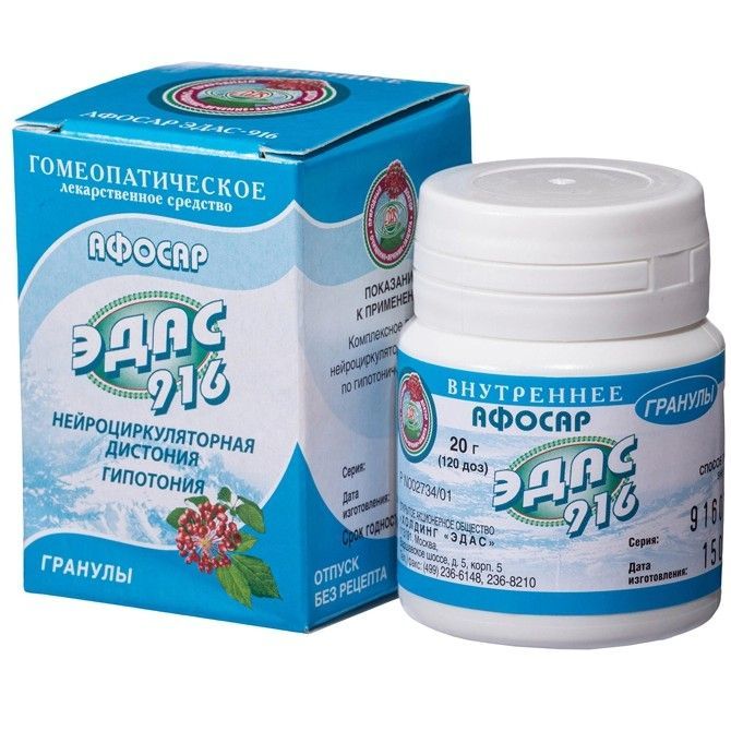 - Привыкания к препарату или «синдрома отмены» не отмечено. Возможна замена гомеопатических гранул Афосар ЭДАС-916 гомеопатическими каплями Афосар ЭДАС-116, препараты идентичны по составу.