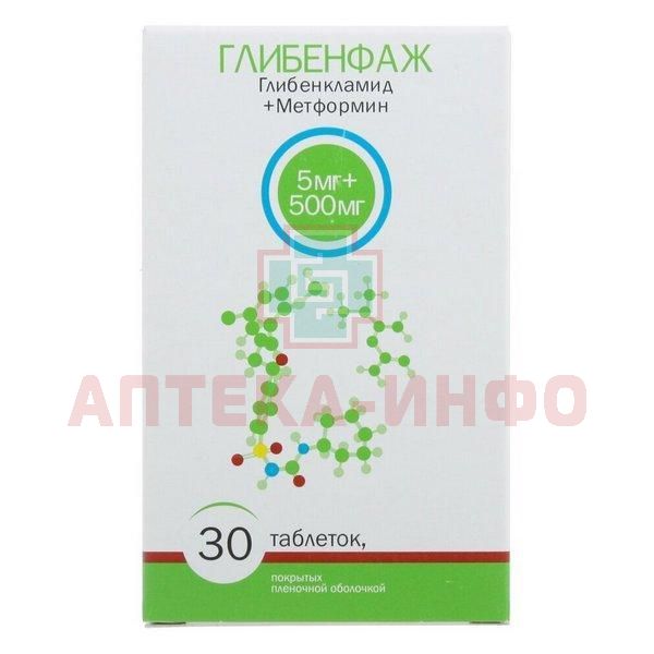 Глибенфаж таб. п/пл. об. 5мг+500мг №30 Фармасинтез-Тюмень