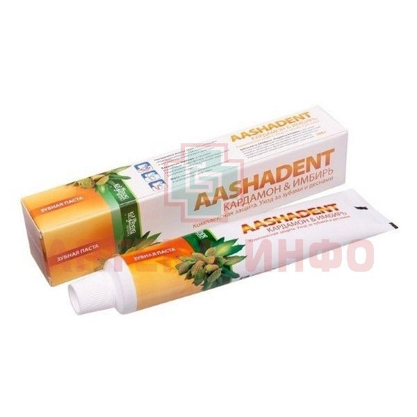 - Зубная паста ААШАдент «Кардамон & Имбирь»для ухода за полостью рта, содержит высокоэффективный Аюрведический комплекс лечебных трав для профилактики воспалительных процессов паоодон-а, кровоточивости десен и кариеса. Хорошо удаляет зубной налет и освежает полость рта.