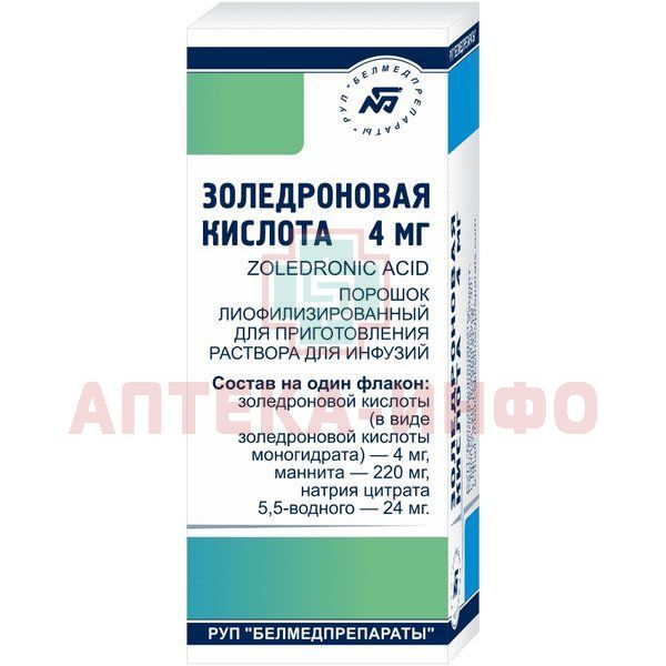 Золедроновая кислота фл.(лиоф. д/конц. д/инф.) 4мг Белмедпрепараты/Беларусь