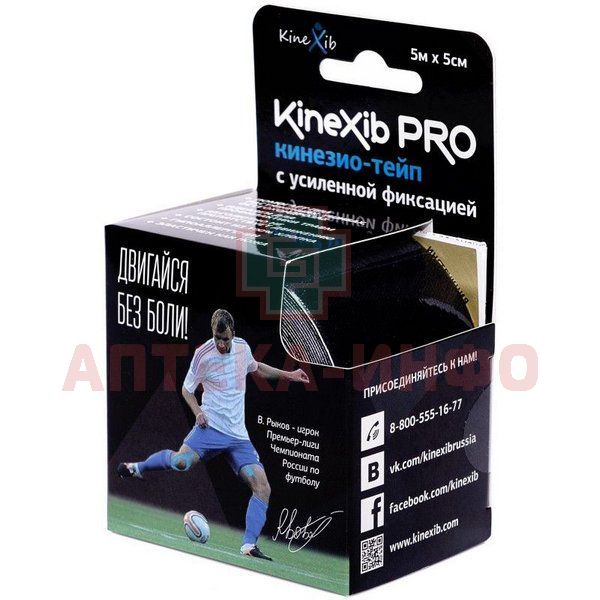 Лента клейкая КИНЕЗИО-ТЕЙП Kinexib Pro с усил. фиксацией 5м х 5см (черн.) Suzhou Sunmed/Китай