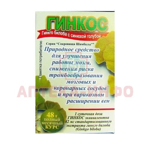 Состав: лист гинкго билобы ? 63%, корневища с корнями синюхи голубой ? 27%, мед натуральный падевый ? 10%.