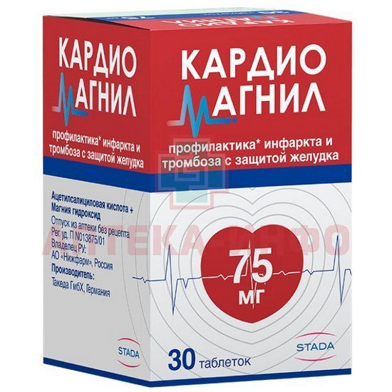 Кардиомагнил таб. п/пл. об. 75мг + 15,2мг №30 Такеда Фармасьютикалс