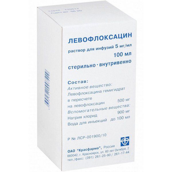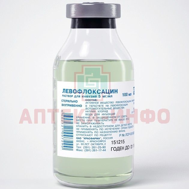Левофлоксацин конт.(р-р д/инф.) 5мг/мл 100мл №12 (ящ.карт.) Красфарма