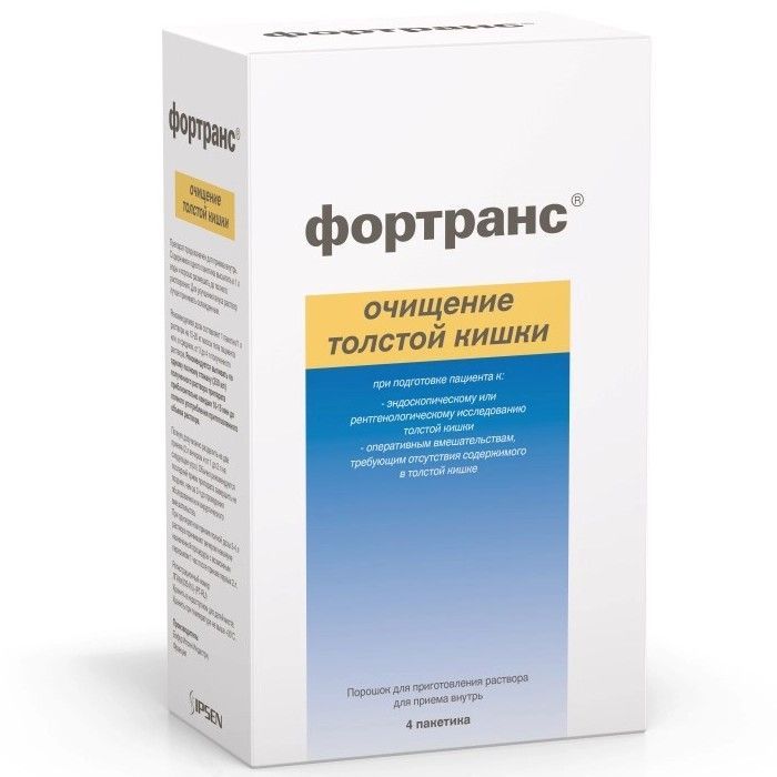 - Если Вы приняли препарата Фортранс® больше, чем предусмотрено, немедленно сообщите об этом своему врачу или обратитесь в отделение неотложной помощи ближайшей больницы. Если есть возможность, возьмите с собой упаковку препарата, чтобы показать врачу, какой препарат Вы приняли. У Вас могут развиться такие симптомы как тяжелая диарея, нарушение баланса электролитов, включая снижение натрия (гипонатриемия) и калия (гипокалиемия) в крови, а также обезвоживание.