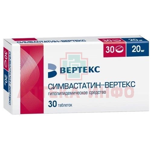 Симвастатин-ВЕРТЕКС таб. п/пл.об. 20мг №30 Вертекс/Россия