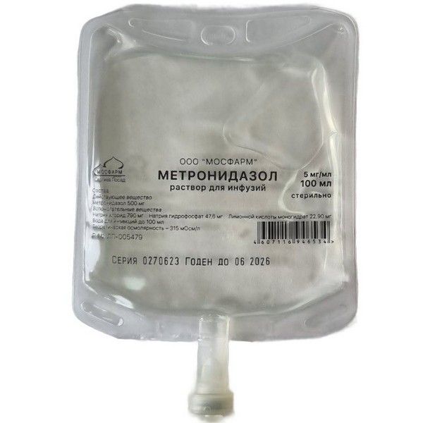 Метронидазол конт.(р-р д/инф.) 5мг/мл 100мл №44 ящ.карт. Мосфарм/Россия