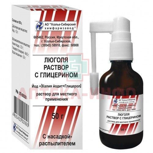 Люголя раствор с глицерином фл.(р-р д/мест. прим.) 50г №1 + расп. насадка (стекло оранж.) Усолье-Сибирский ХФЗ