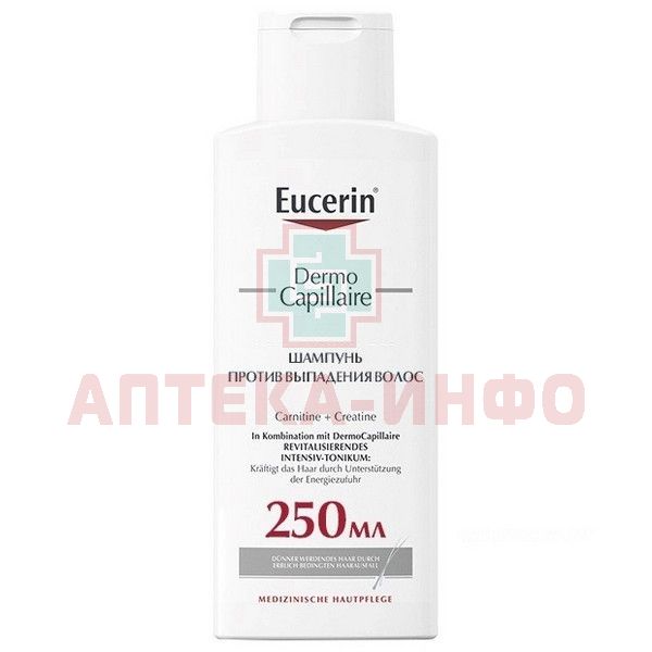 - EUCERIN DERMO CAPILLAIRE ШАМПУНЬ ПРОТИВ ВЫПАДЕНИЯ ВОЛОС - создан для борьбы с генетически вызванным выпадением волос и их истончением.