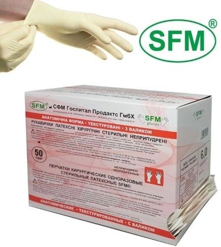 - ПЕРЧАТКИ ХИРУРГИЧЕСКИЕ SFM ЛАТЕКСНЫЕ СТЕРИЛЬНЫЕ АНАТОМИЧЕСКИЕ - для работ в медицинских, хирургических целях.