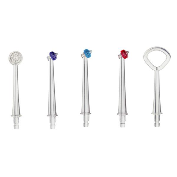 Прибор могут использовать все члены семьи. В комплект поставки входят 5 насадок разных цветов и типов. Пользователь имеет возможность подобрать подходящий именно для него режим работы («Струя» или «Спрей») и интенсивность подачи водного потока.