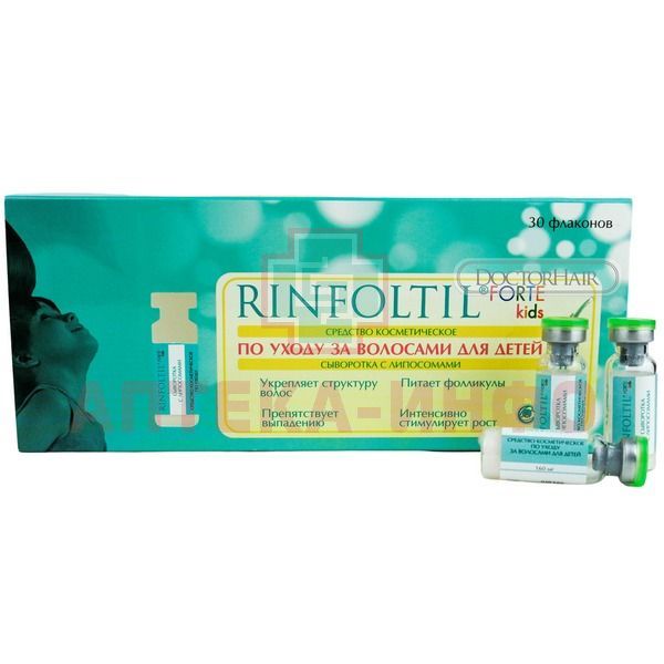 Липосомальная сыворотка для волос RINFOLTIL кидс ФОРТЕ активатор роста детских волос, действует эффективно против выпадения, интенсивно стимулирует рост волос. Липосомы, с заключенными внутрь веществами проникают в глубокие слои кожи и в волосяные фолликулы. Сбалансированный комплекс включает липосомальные активные компоненты: витамины В1, В5, В6, В7(биотин), В8, С, Е, экстракт плодов пальмы Serenoa repens (saw palmetto) Сыворотка для роста волос RINFOLTIL кидс ФОРТЕ помогает восстановить и укрепить структуру волосяного стержня, питает корни волос. Сыворотка с липосомами безопасна для детей и подростков. Технология лиофилизации (высушивания) позволяет не использовать консерванты. Нейтральный рНСпособ применения