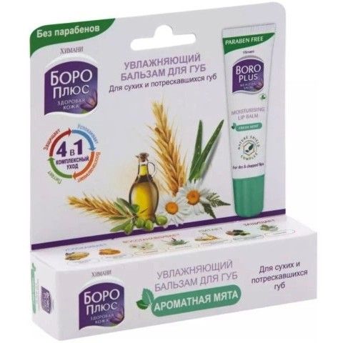 Бренд Himani Boro Plus - это бренд индийской компании «Эмами Лимитед» (Emami) в категории средств по уходу за кожей. HIMANI BORO PLUS БОРО ПЛЮС ЗДОРОВАЯ КОЖА БАЛЬЗАМ ДЛЯ ГУБ УВЛАЖНЯЮЩИЙ АРОМАТНАЯ МЯТА - Комплексный уход за губами 4 в 1Боро Плюс увлажняющий бальзам для губ с 4 натуральными маслами и лекарственными травами специально разработан для того, чтобы обеспечить полный уход за вашими губами. При постоянном использовании бальзам:• Восстанавливает cvxne и потрескавшиеся губы• Снимает дискомфорт из-за трещин• Питает губы и возвращает им здоровый вид• Защищает от трещин и шелушенияБазилик является одним из наиболее полезных лекарственных растений. Он предотвращает образование трещин и шелушение губ. Оливковое масло содержит в себе большое количество количество витаминов E и A, способствует ускорению регенерации клеток кожи и снимает дискомфорт из-за трещин. Миндальное масло - это прекрасное увлажняющее средство, которое предотвращает высыхание и шелушение кожи, а также прекрасно снимает неприятные ощущения, возникшие из-за трещин. Масло зародышей пшеницы стимулирует процесс обновления клеток, питает губы и возвращает им здоровый вид. Масло виноградных косточек обладает противовоспалительными свойствами, увлажняет и питает кожу губ, а также придает им здоровый вид. Ромашка римская обладает противовоспалительным и успокаивающим действием, и, к тому же, стимулирует кровообращение. Ромашка быстро восстанавливает сухие и потрескавшиеся губы. Алоэ вера - это мощный биостимулятор, повышающий клеточную активность, обладающий сильными противовоспалительными и регенерирующими свойствами, борется с сухостью губ и трещинами.