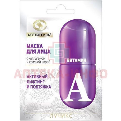 Маска косметическая Акулья сила д/лица Витамин А активный лифтинг и подтяжка 12мл ЛУЧиКС