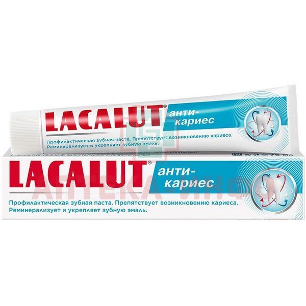 - Зубная паста Lacalut анти-кариес мощно укрепляет зубную эмаль и защищает от кариеса благодаря сочетанию аминофторида, фторида натрия и гидроксиапатита. Гиалуроновая кислота увлажняет слизистую полости рта и способствует регенерации тканей. Соединение цинка и растительные экстракты дополнительно оказывают противовоспалительный эффект. Идеально подходит для людей с повышенной чувствительностью зубов для длительного применения.