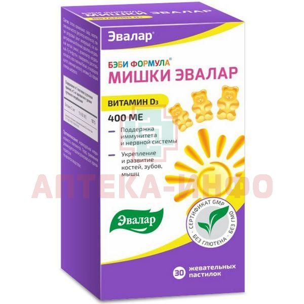 Бэби формула Мишки Витамин Д3 пастилки жев. №30 Эвалар/Россия