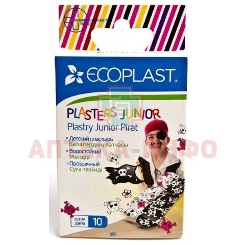 Лейкопластырь ECOPLAST "Junior Pirate" набор 70х20мм №10 (полим. основа) ЛСЭЗ НордеПласт/Латвия