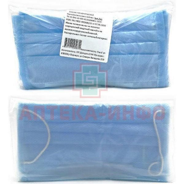 Маска защитная гигиенич. трехслойная р.M №5 (голубая) ИП Догадин