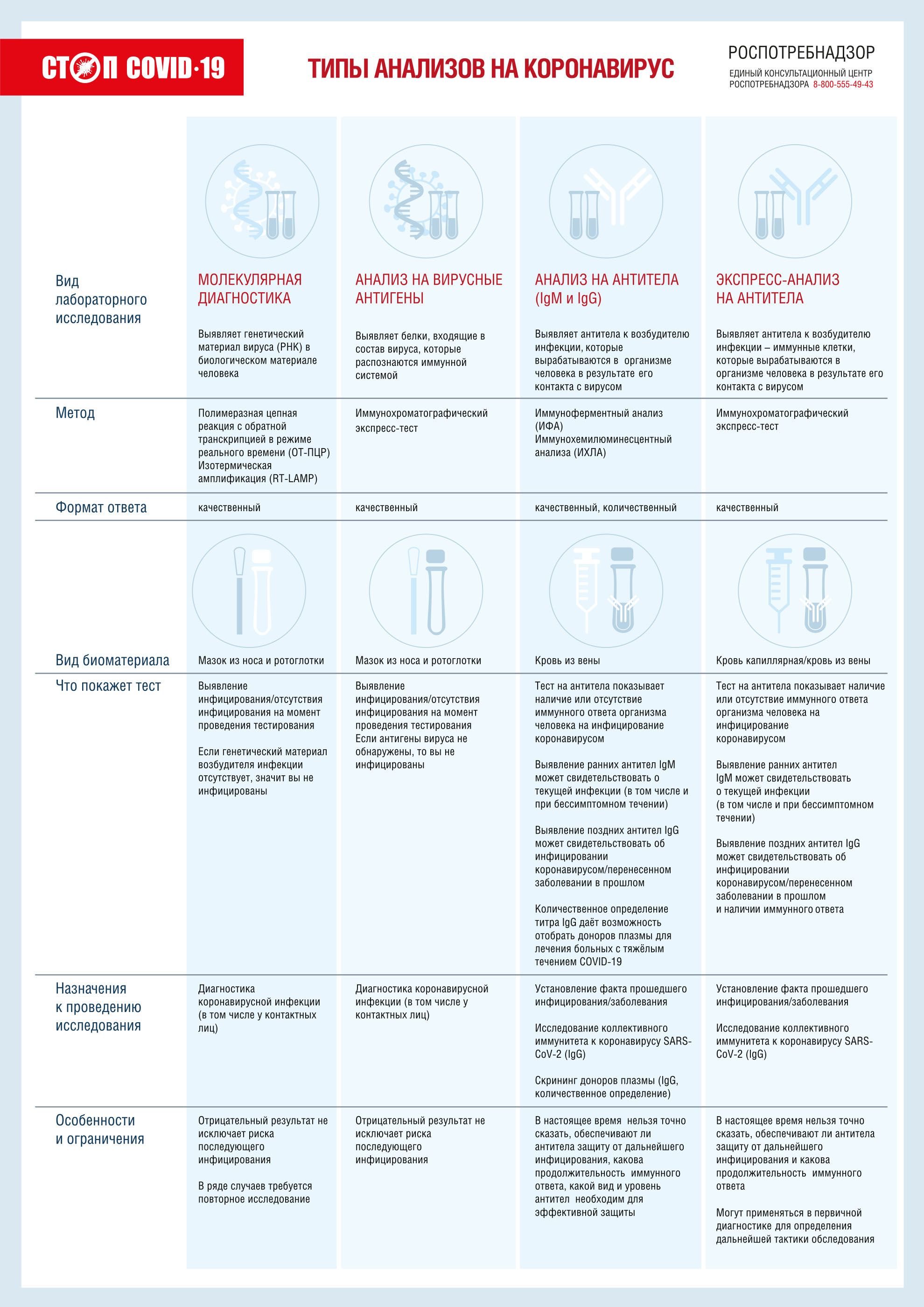 Виды тестов на коронавирус COVID-19