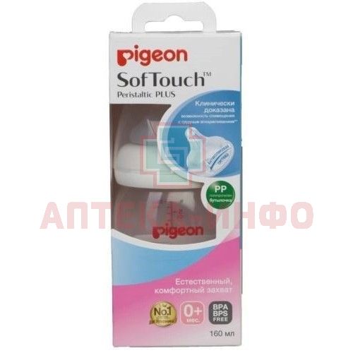 - PIGEON SOFTOUCH PERISTALTIC PLUS БУТЫЛОЧКА ДЛЯ КОРМЛЕНИЯ ПОЛИПРОПИЛЕН - для кормления с физиологической соской разработана специально для грудных младенцев на основе научно-практических исследований лаборатории Pigeon.