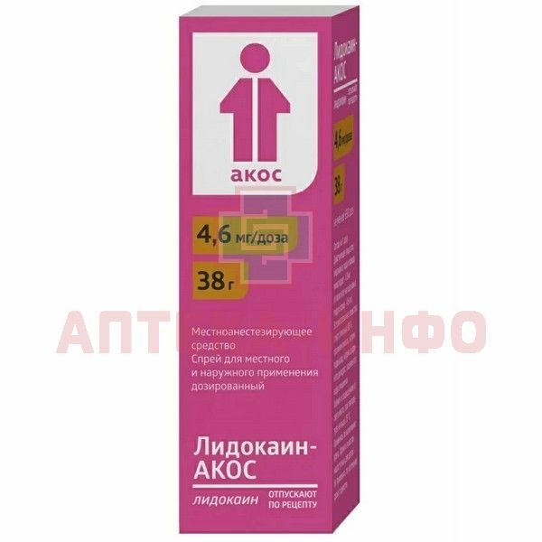 Лидокаин-АКОС фл.(спрей д/местн. и наружн. прим. дозир.) 4,6 мг/доза 38г Синтез