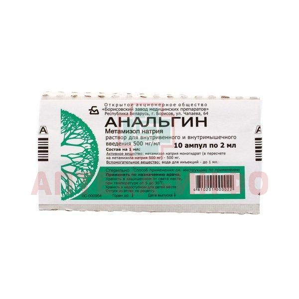 Анальгин амп.(р-р д/в/в и в/м введ.) 500мг/мл 2мл №10 Борисовский ЗМП/Беларусь
