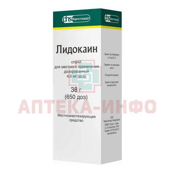 Лидокаин фл.(спрей д/местн. прим. дозир.) 4,6 мг/доза 38г Фармстандарт-Лексредства/Россия