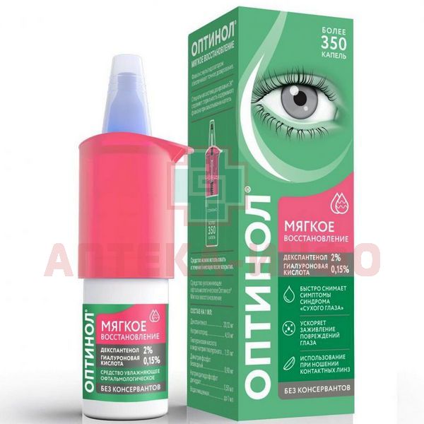 Выполняя функции естественной слезы, средство увлажняющее офтальмологическое Оптинол® Мягкое восстановление способствует ускорению заживления повреждений и ран глаза после травм и хирургических операций. Средство увлажняющее офтальмологическое Оптинол® Мягкое восстановление эффективно и быстро снимает симптомы синдрома «сухого глаза» различной степени выраженности: устраняет ощущение инородного тела, жжения, рези в глазах, способствует снятию усталости при интенсивной зрительной нагрузке, устраняет дискомфорт при ношении всех типов контактных линз, поддерживает здоровое состояние глаз.
