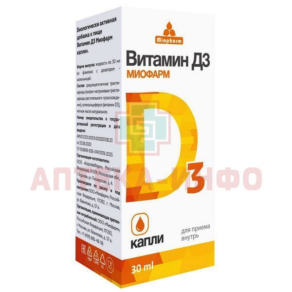 Витамин Д3 Миофарм капли 30мл КоролевФарм