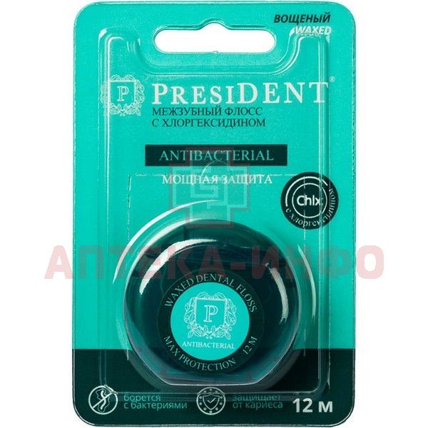 Зубная нить ПРЕЗИДЕНТ флосс антибактер. с хлоргексидином 12м (арт. 203) Hebei Fenghe Biotechnology/Китай