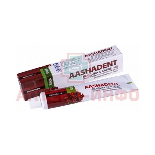 - AASHA HERBALS ЗУБНАЯ ПАСТА ГВОЗДИКА И БАРЛЕРИЯ AASHADENT - пастообразная масса серо-розового цвета с лёгким запахом специй.