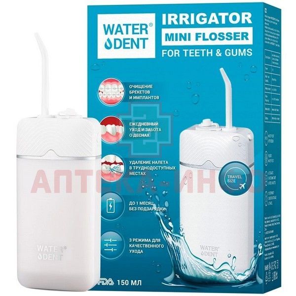 - •Портативный ирригатор WATERDENT Mini Flosser в мини формате для путешествий удалит 99,9% зубного налета, эффективно очистит межзубные пространства и сохранит здоровье полости рта. Портативная модель работает от встроенного аккумулятора. Компактный формат позволяет использовать прибор в офисе, поездках, самолете. Сохранена эффективность, давление струи и частота пульсации воды при уменьшенном формате прибора.