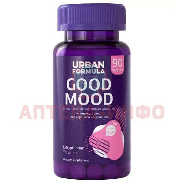 Биологически активная добавка к пище Urban Formula Good Mood. Рекомендуется в качестве дополнительного источника витамина В1, источника триптофана, содержит иридоиды.Комплекс содержит L-триптофан -одну из главных аминокислот, участвующих в обменных процессах нервной системы.