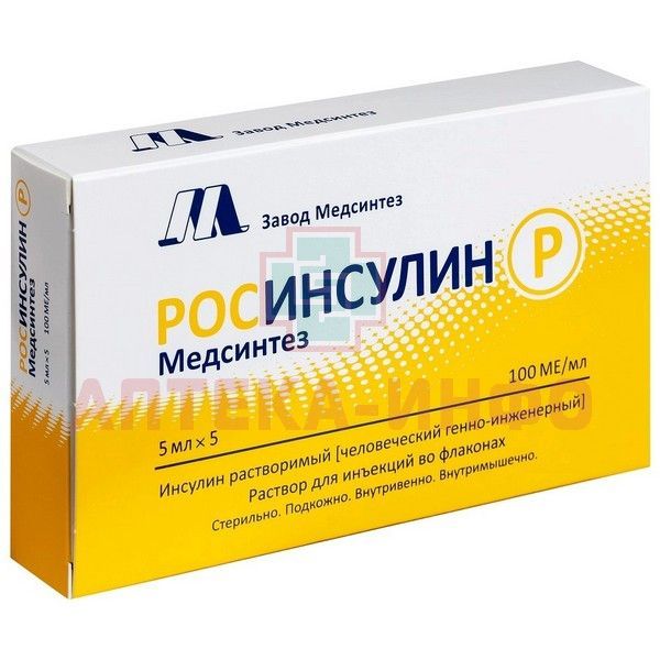 Росинсулин Р Медсинтез фл.(р-р д/ин.) 100 МЕ/мл 5мл №5 Медсинтез завод