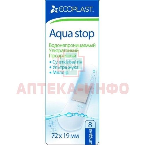 - ECOPLAST НАБОР ПЛАСТЫРЕЙ МЕДИЦИНСКИХ ПЛЕНОЧНЫХ AQUA STOP - состоит из телесных пластырей прямоугольной формы в индивидуальной упаковке