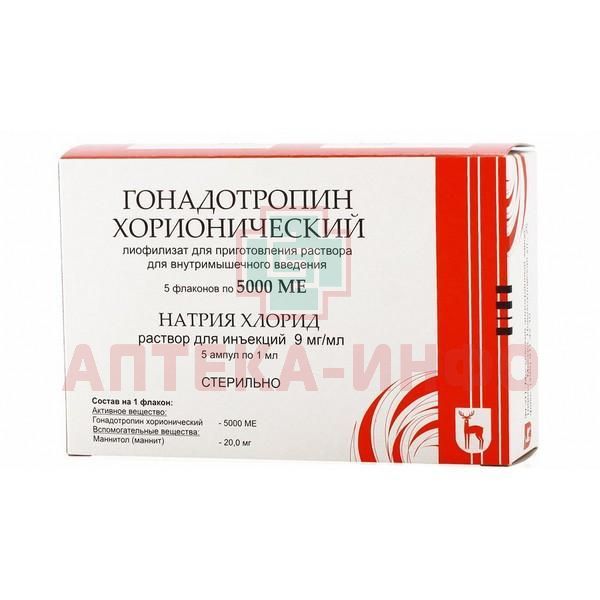 Гонадотропин хорионический фл.(лиоф. д/приг. р-ра д/в/м введ.) 5тыс.ЕД №5 + р-ль Московский эндокринный завод