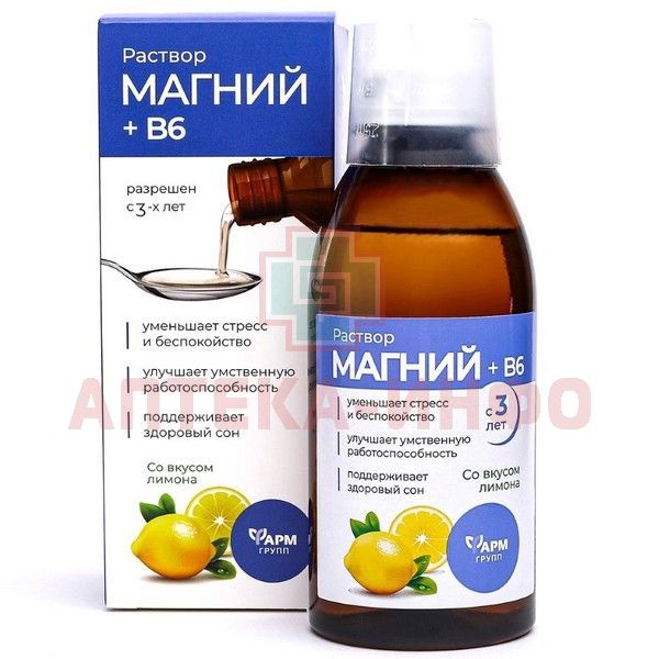 - МАГНИЙ+В6 РАСТВОР ДЛЯ ДЕТЕЙ С 3-Х ЛЕТ И ВЗРОСЛЫХ - Биологически активная добавка (БАД) к пище со вкусом лимона уменьшает стресс и беспокойство, улучшает умственную работу, поддерживает здоровый сон.