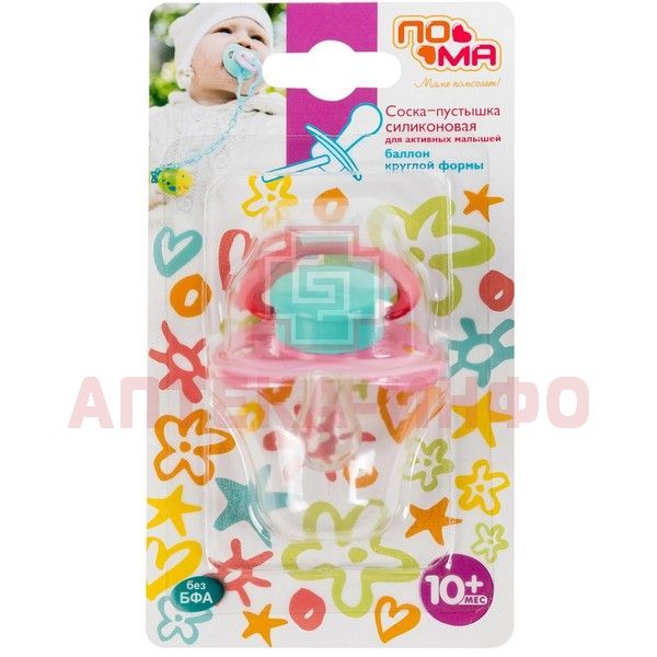 - Пустышка адаптированной формы для детей от 10-х месяцев. Силиконовая пустышка учитывает анатомические и возрастные особенности малыша. Отверстия на нагубнике предотвращают раздражение нежной кожи малыша. Пустышка изготовлена из прочного, безопасного пластика (полипропилен), баллон изготовлен из силикона.