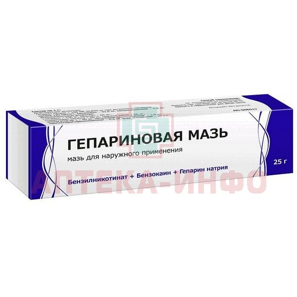 - Комбинированный препарат для наружного применения, действие которого обусловлено свойствами входящих в его состав компонентов. Антикоагулянт прямого действия. Постепенно высвобождающийся из мази гепарин натрий уменьшает воспалительный процесс и оказывает антитромботическое действие. Способствует рассасыванию уже имеющихся и препятствует образованию новых тромбов. Блокирует синтез тромбина, уменьшает агрегацию тромбоцитов. Угнетает активность гиалуронидазы, активирует фибринолитические свойства крови. Бензиловый эфир никотиновой кислоты расширяет поверхностные сосуды, способствуя всасыванию гепарина. Местный анестетик бензокаин уменьшает выраженность болевых ощущений. При нанесении на кожу оказывает местное анальгезирующее действие.