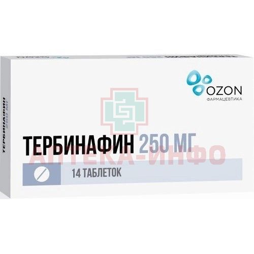 - Действующее вещество: тербинафина гидрохлорид 281,0 мг, в пересчете на тербинафин 250,0 мг
