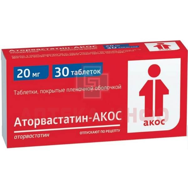 Аторвастатин-АКОС таб. п/пл. об. 20мг №30 Биоком