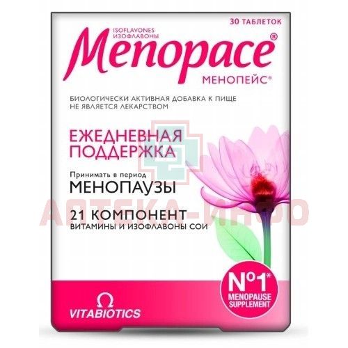 - МЕНОПЕЙС ИЗОФЛАВОНЫ - Биологически активная добавка (БАД) к пище - в период гормональных изменений, сопровождающих менопаузу, диета и образ жизни играют большую роль в общем самочувствии женщин. Menopace® - это витаминноминеральный комплекс, разработанный экспертами Vitabiotics, чтобы обеспечить женщинам эффективную ежедневную нутритивную поддержку в этот период