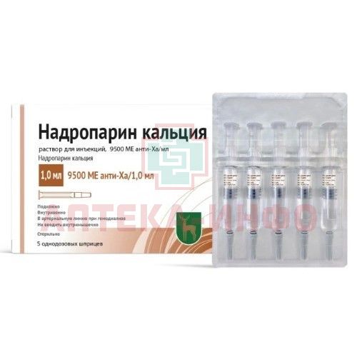 - Действующее вещество: Надропарин кальция - 9500 МЕ анти-Ха-факторной активности