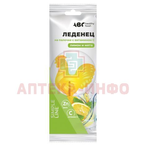 Карамель АВС ХЭЛСИ ФУД Петушок леденцовая с цинком и вит. С 17г (лимон и мята) Гуслица/Россия