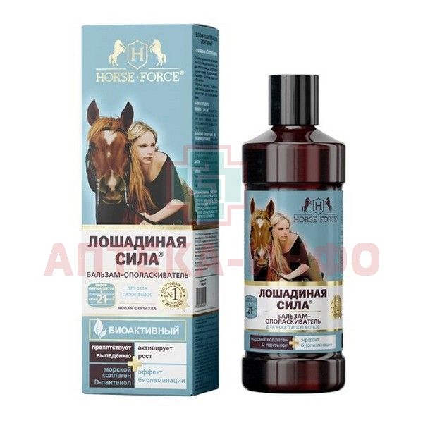 - Бальзам-ополаскиватель Лошадиная Сила предназначен для профессионального и бережного ухода за волосами. Создан на основе натуральных биоактивных веществ и растительных экстрактов (мать-и-мачеха, череда, облепиха, чебрец, лопух, хвощ), обогащен протеинами пшеницы, смесью витаминов, коллагеном и провитамином В5, которые придают мягкость и шелковистость волосам, улучшая состояние кожи головы. Рекомендуется для быстрого восстановления структуры поврежденных волос, придания волосам мягкости и шелковистости. Улучшает состояние волос, препятствует их выпадению.