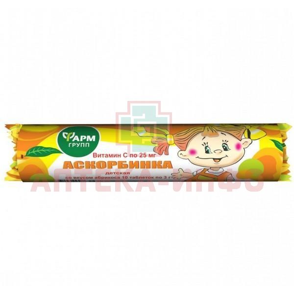 Аскорбинка детская таб. 3г (витамин С 25мг) №10 (абрикос) Фармгрупп