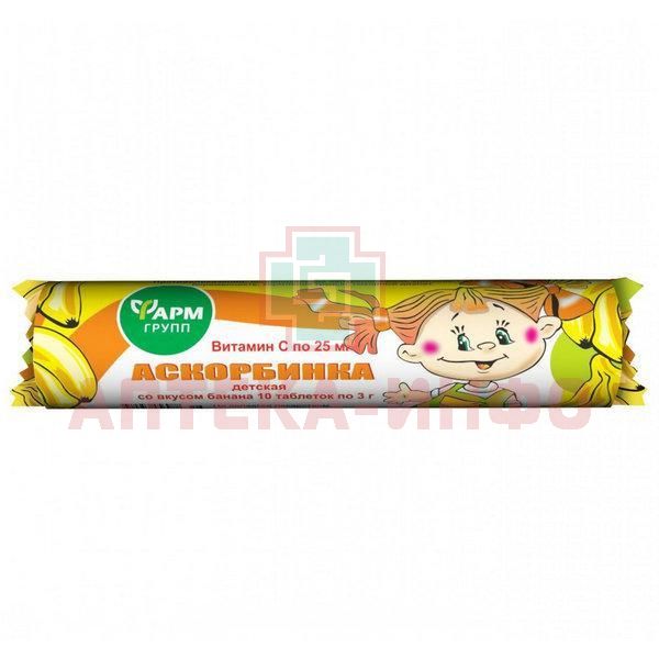 Аскорбинка детская таб. 3г (витамин С 25мг) №10 (банан) Фармгрупп/Россия