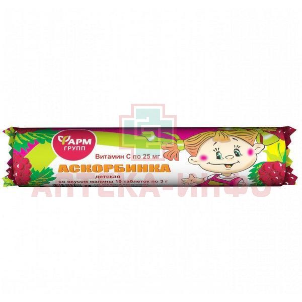 Аскорбинка детская таб. 3г (витамин С 25мг) №10 (малина) Фармгрупп/Россия