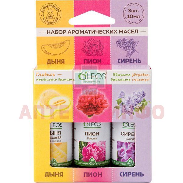 Набор ароматич. масел 10мл №3 (дыня медовая/пион/сирень) Олеос/Россия