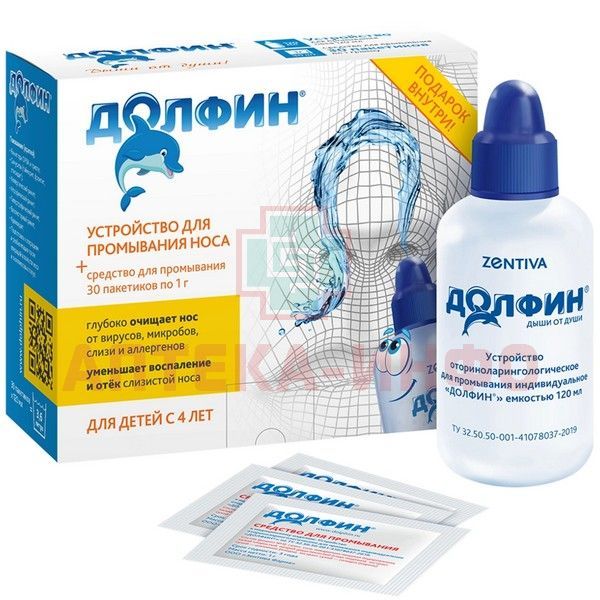 Устройство ДОЛФИН д/детей д/промывания носа 120мл + пак. №30 Зентива Фарма